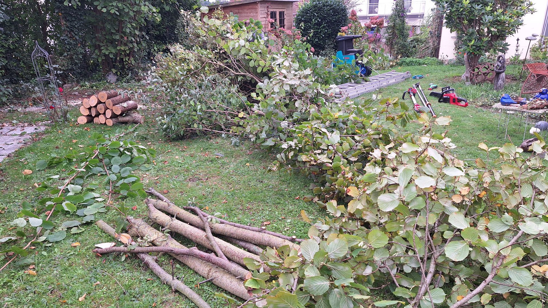 Die bereits im Sommer geplanten Arbeiten im Garten von Waltraud (Auslichten eines großen Haselstrauches und Fällen einr großen Eberesche) konnten wir bei angenehmen Temperaturen endlich in Angriff nehmen. Danke des reichhaltigen und zweckmäßigen Ausrüstung unseres Vorstandsmitglieds Karl mit den notwendigen Werkzeugen, konnten die Arbeiten inklusive Häckseln und Abfuhr des Grünguts zum Recyclinghof noch am gleichen Tag abgeschlossen werden. Die Akteure wurden von Waltraud mit einem deftigen und schmackhaften Schweinsbraten mit Kraut und Knödel sowie Kaffee und Kuchen mehr als gebührend verwöhnt.